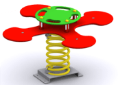 El balancín de muelle multiple en forma de flor, permite que se suban hasta 4 niños a la vez. Todos los niños se sujetan por la parte central y lo mueven todos a la vez, como si fuera una flor movida por el viento.