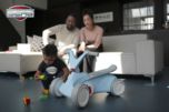 Las ruedas de atrás están más juntas para no molestar cuando los niños anden en la primera fase de vehículo correpasillos, los pedales estarán plegados también evitaran que los niños se golpeen con ellos cuando anden.