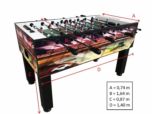 - Las medidas del futbolín montado son: 139,7 cm (largo) x 73,6 cm (ancho) x 86,3 cm (alto)