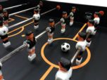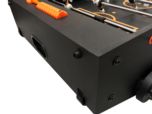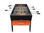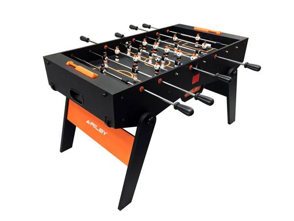 Futbolín Supreme con un diseño moderno y colorido combinado con un sistema de plegado compacto para guardar el futbolín cuando no se utilice.