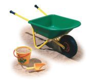 Carretilla infantil BERG DEMPY con neumático de verdad, cajón de plástico fuerte y estructura de acero. Una carretilla infantil para cargar arena, de gran calidad. Tan fuerte que es apropiada para escuelas.