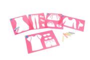 Unas plantillas para dibujar con tizas en la calle diferentes piezas de ropa. Se incluyen 5 plantillas y 7 tizas de colores.