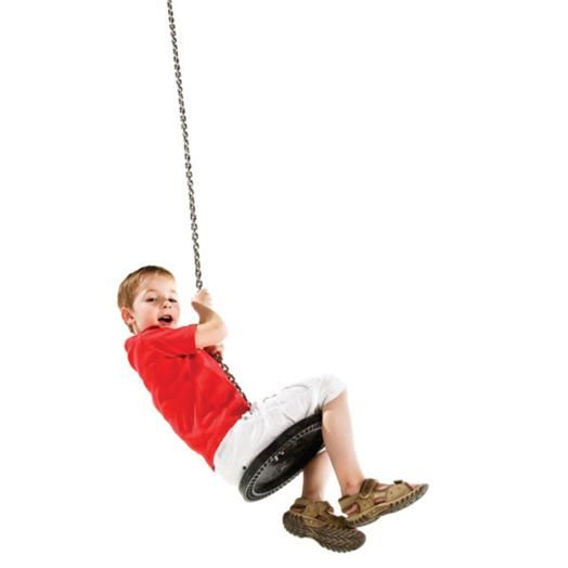 El asiento de la tirolina viene con una cadena en acero galvanizado de 6 mm de diámetro. El extremo superior de la cadena termina con un gancho giratorio compatible con la tirolina de uso público.