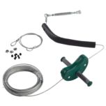 El cable sujeto entre dos soportes o dos árboles se tensa a partir de un tensor galvanizado.