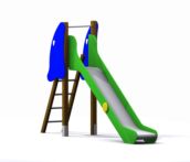 Tobogán de niños para parques públicos. El tobogán de diseño moderno, los embellecedores de madera pintados de colores llamativos, así hace una estructura mucho más atractiva y alegre para los niños. Tobogán homologado para uso comercial o público, es un tobogán rotomoldeado con componentes plásticos de alta densidad y madera tratada en autoclave, tobogán fuerte adecuado para comunidades, escuelas, restaurantes, etc. Su material está pensado para tener mayor fuerza y resistencia frente las inclemencias del tiempo. El tobogán “SAMI” su edad recomendada es a partir de 3 años, tiene 1,300 metros de altura libre de caída.