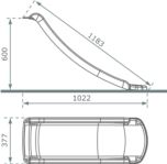 Las medidas de la rampa son las siguientes:120 cm de largo y 37 cm de ancho.