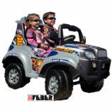 El coche de batería X-storm Bravo High Speed es un coche de dos plazas estilo todoterreno. Las dos plazas que tiene el coche, vienen con cinturones de seguridad (que no protegen). Este coche de Feber es un bonito vehículo de 4 ruedas con un motor y batería. El todoterreno X-Storm Bravo tiene marcha hacia adelante y hacia atrás. El coche infantil tiene un acelerador en el pie y un freno eléctrico. El volante deportivo tiene botones y luces para activar los sonidos y la radio FM. Como tiene una batería de 12 V puede subir pendientes de hasta 17º y alcanzar una velocidad de 7 km /h. En el precio está incluida una batería y un cargador.